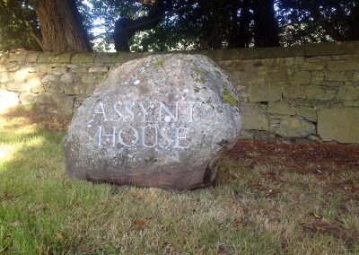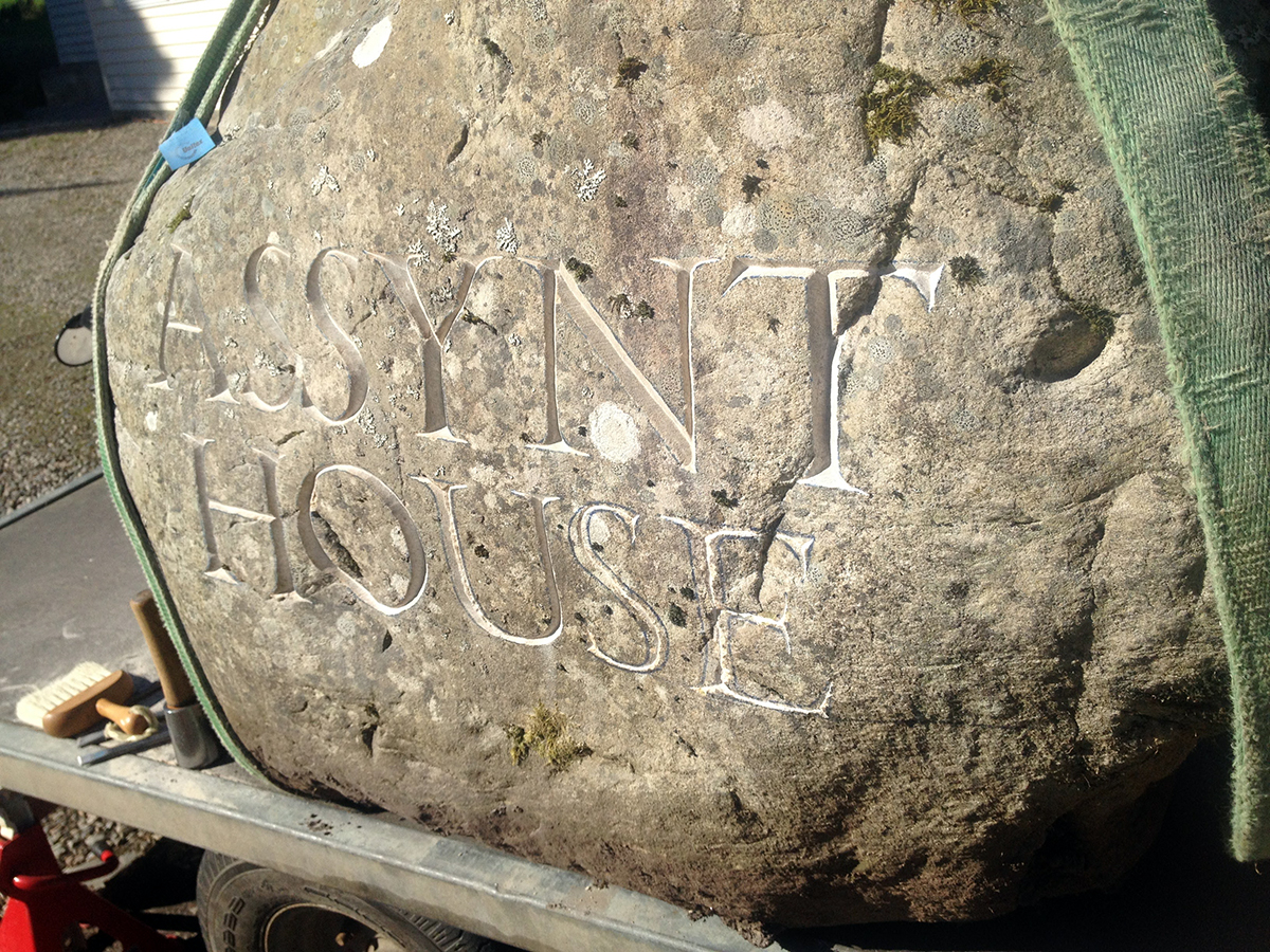 This one had to be carved in-situ. A big boulder house name for a stunning property near Evanton. Assynt House.