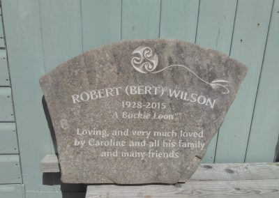 I really enjoyed this one. the client had a fragment of old grinding wheel in their garden and asked if I could use it for a memorial headstone for her late husband. Design contains pictish triskele and fishing fly.