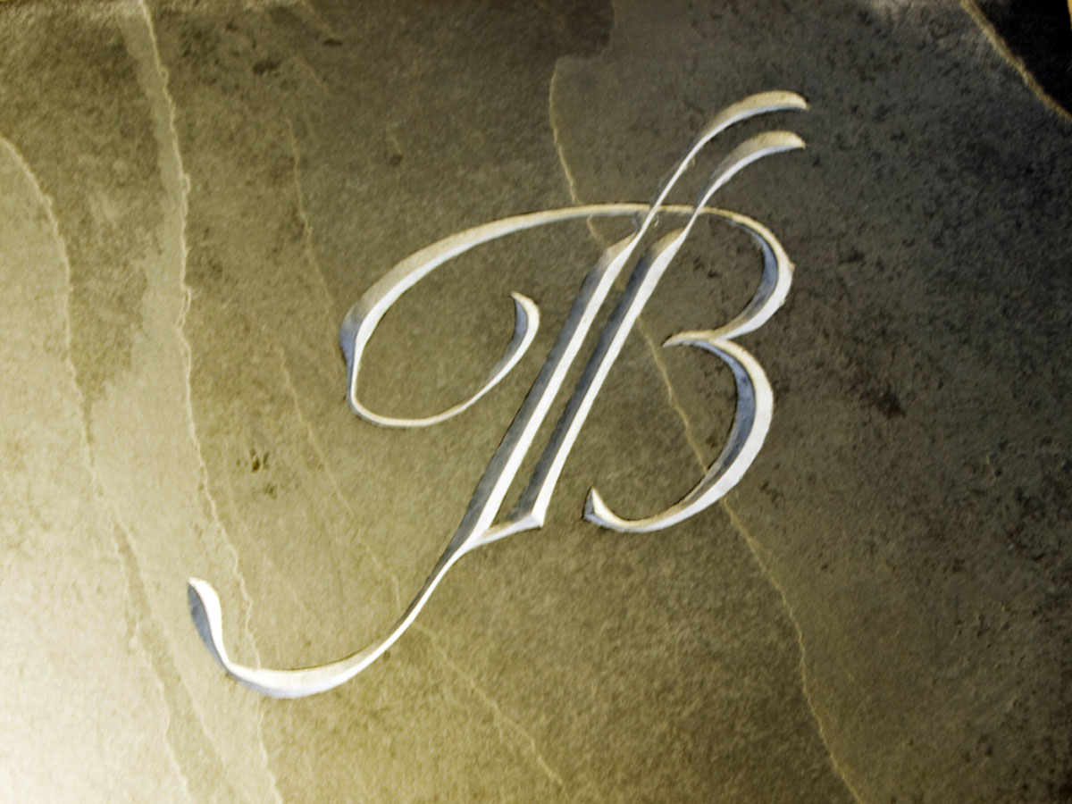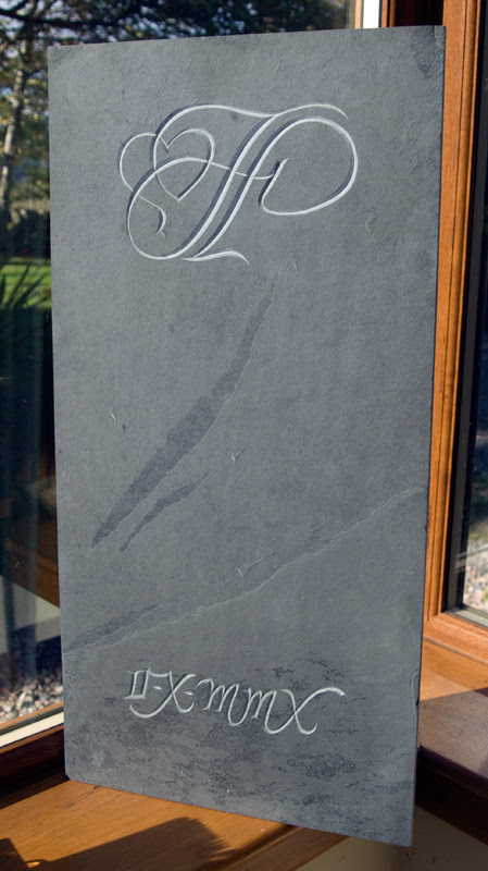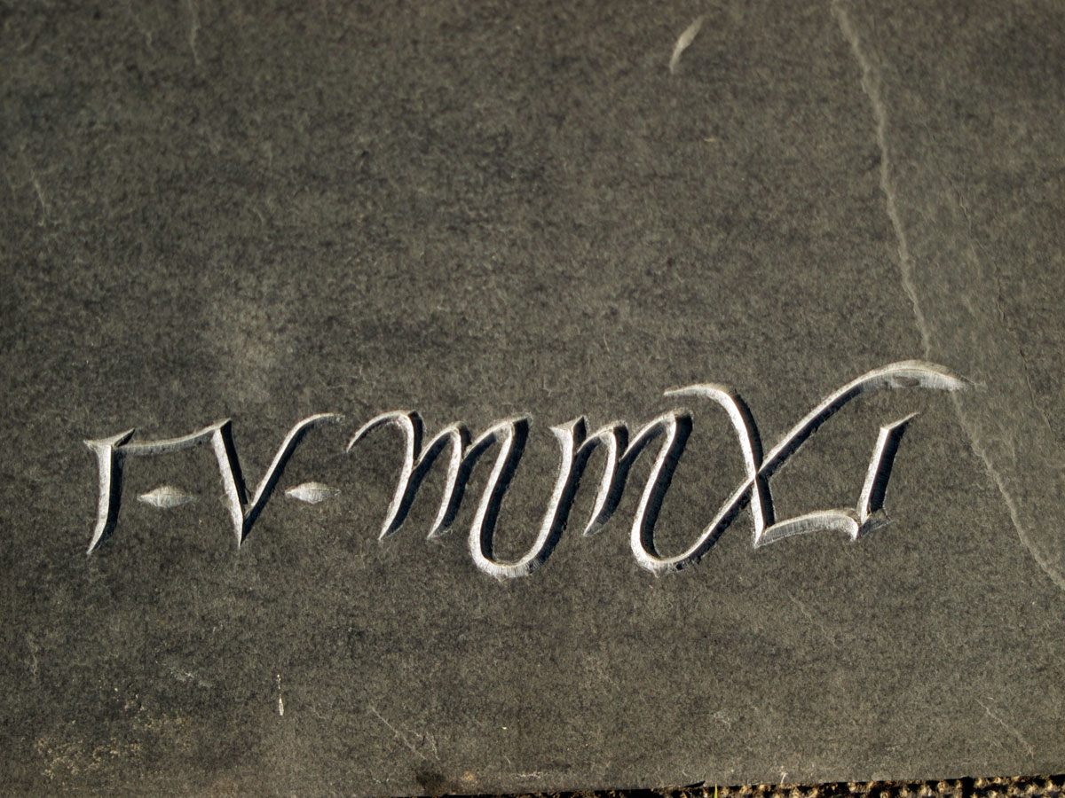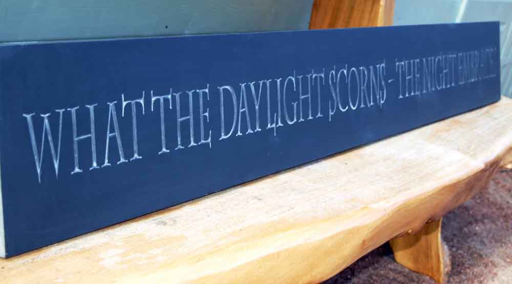 Hand-carved song lyrics on slate