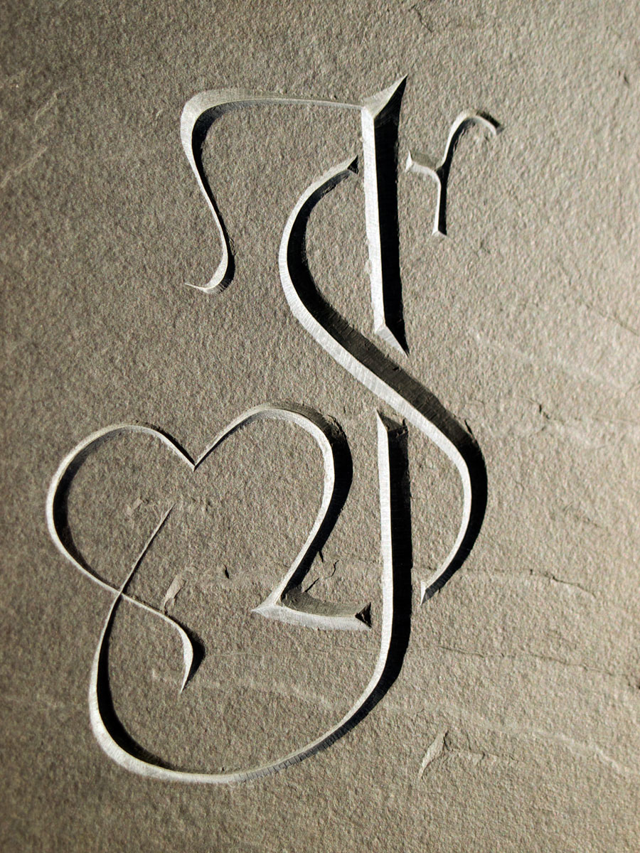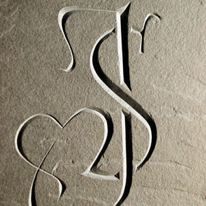 Celtic love knot with initials carved in marble
