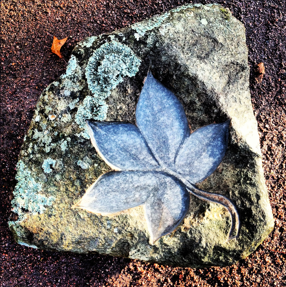 Carved stone "maple leaf" bird bath