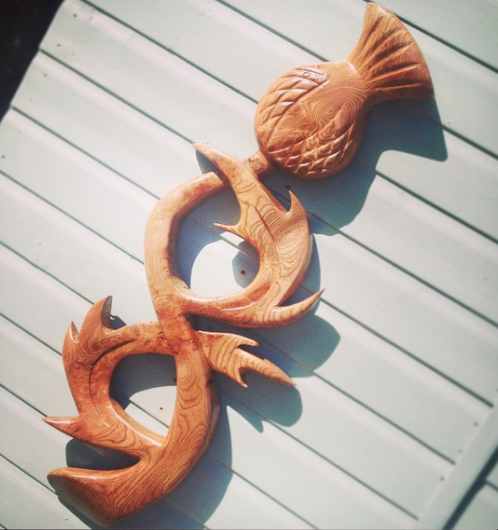 Carved wooden wall-mounted trout