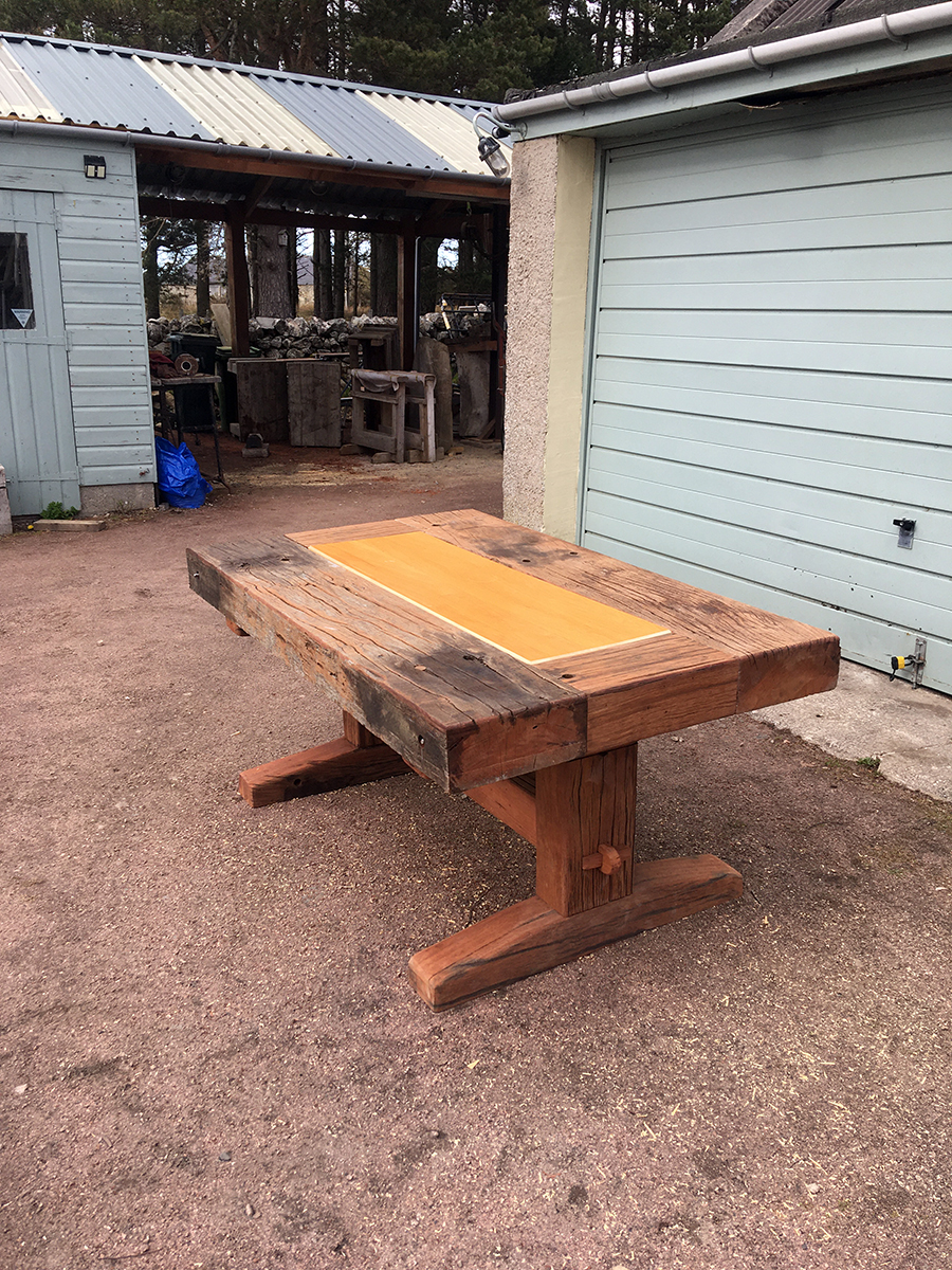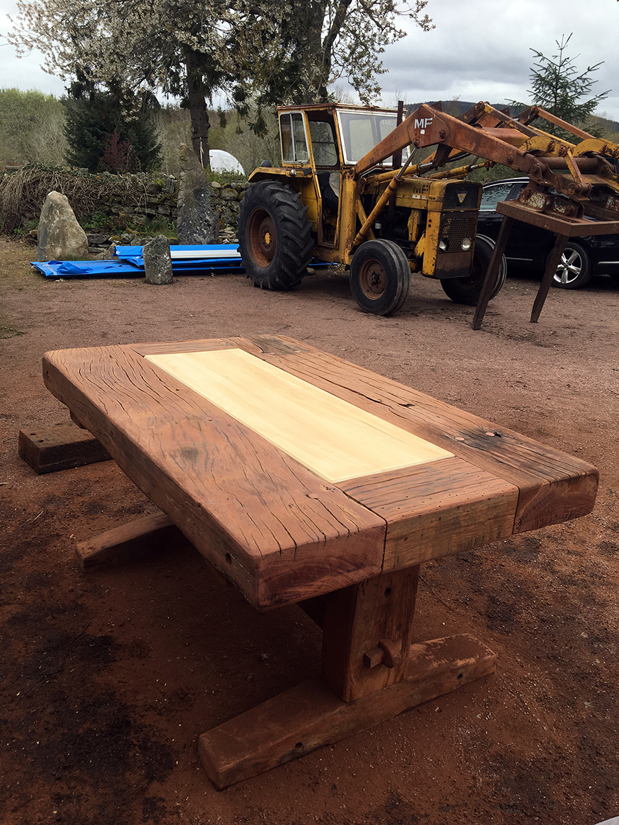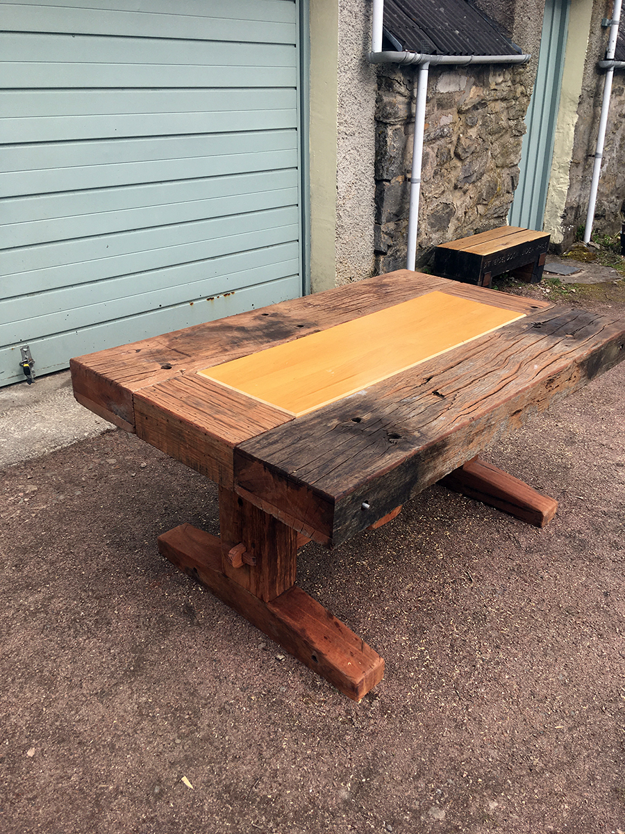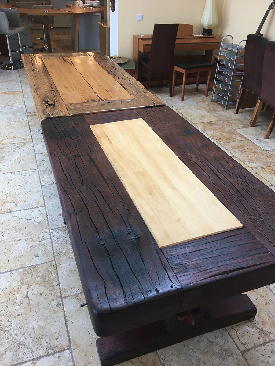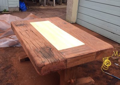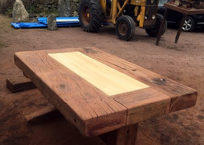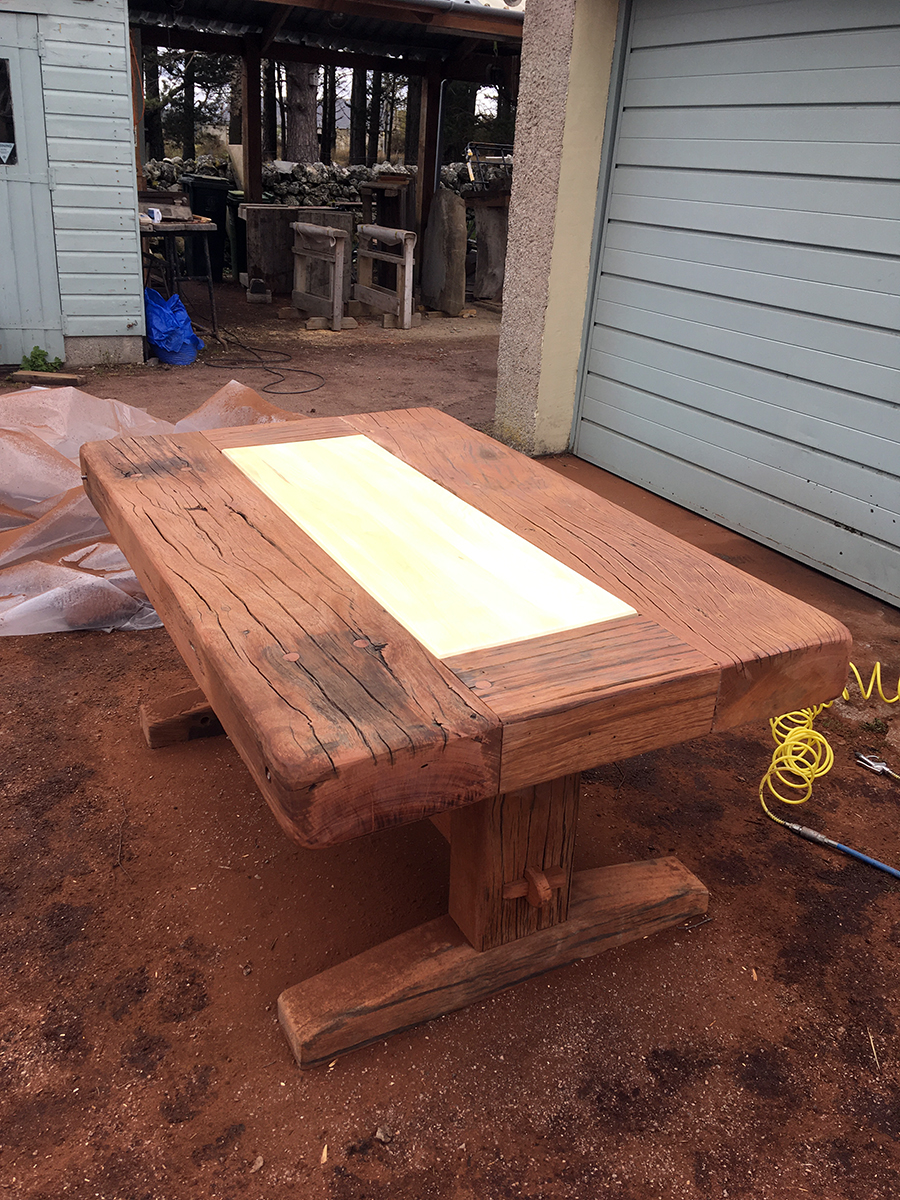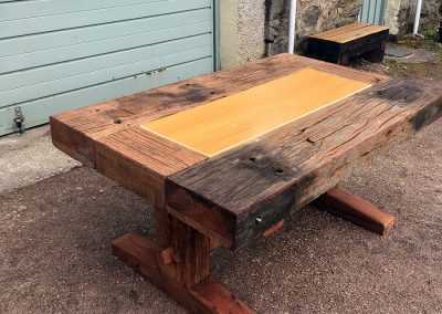A previous client and now friend approached me to copy a big dining table, made from railway sleepers that had been purchased in South Africa. Sadly I was unable to source the same timber as the original but I made a reasonably decent job with locally-sourced sleepers. This was a beast!