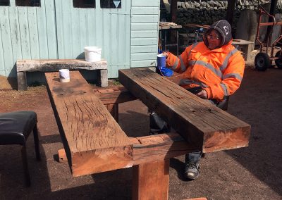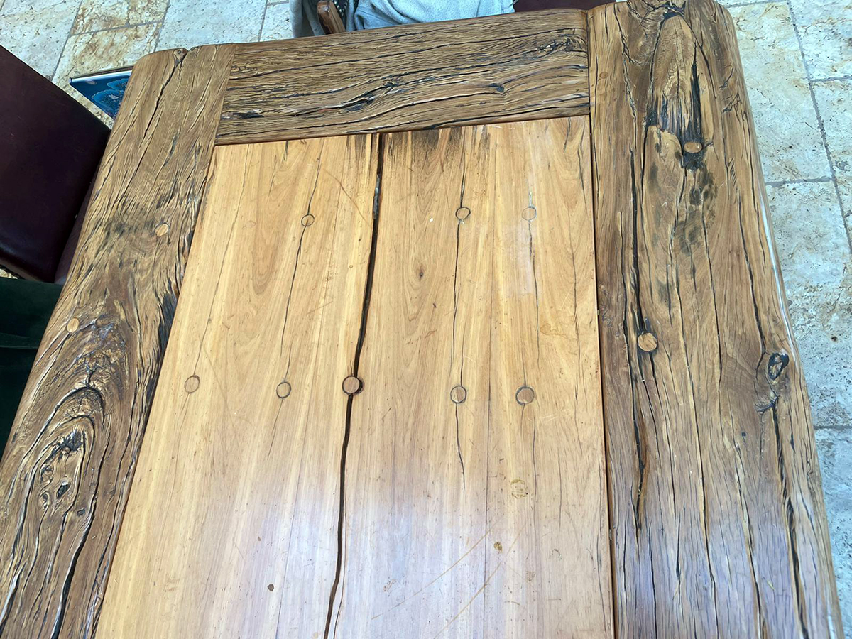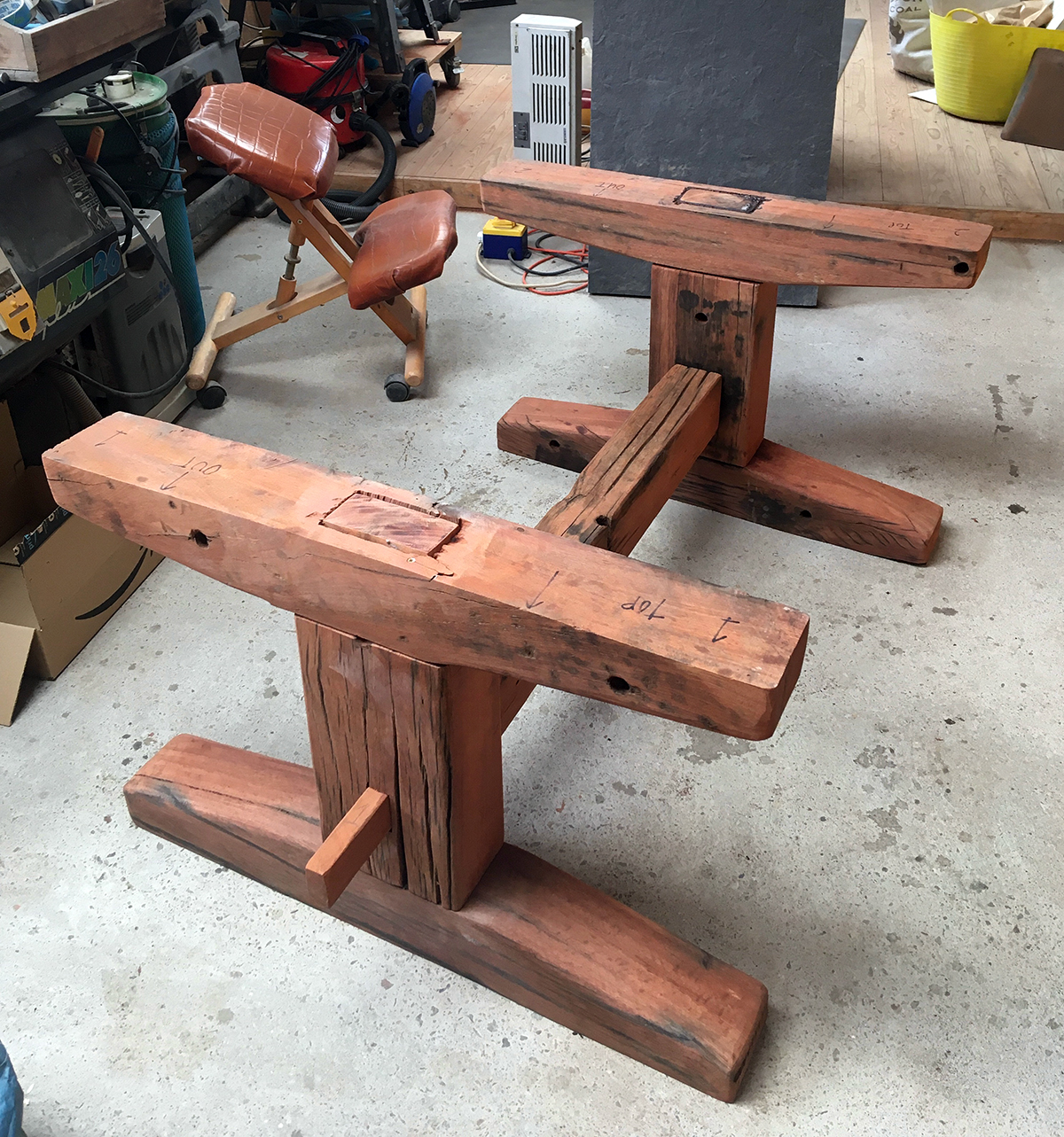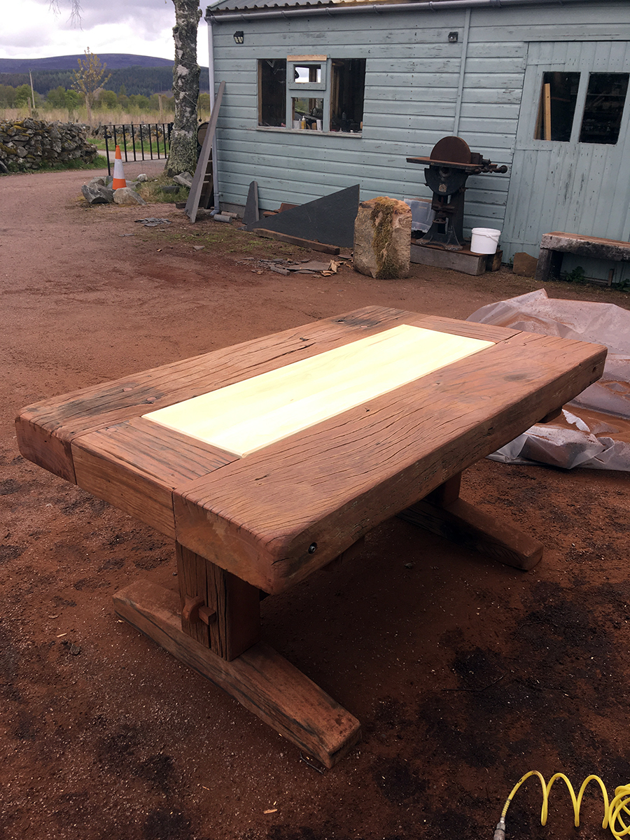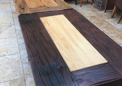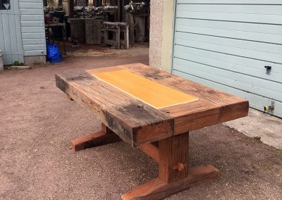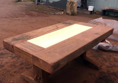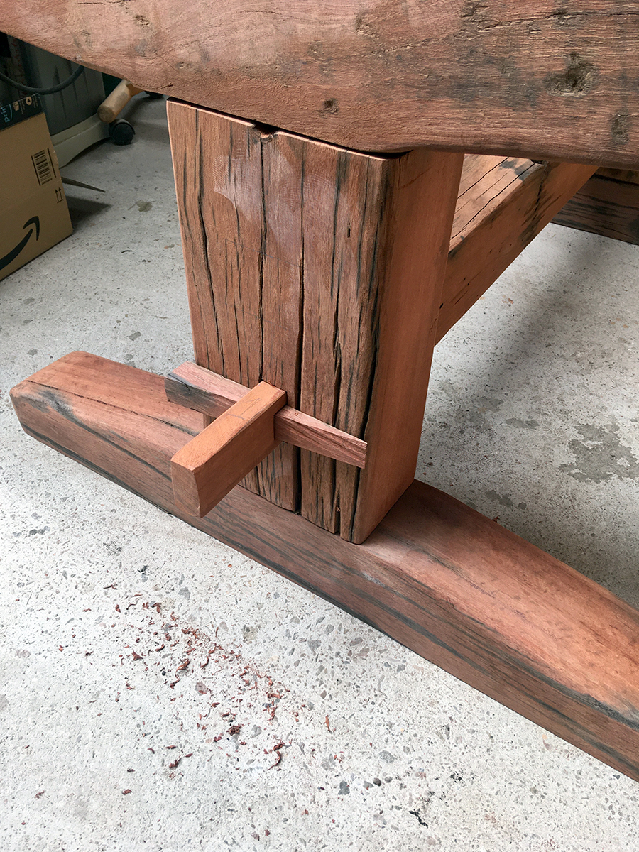 A previous client and now friend approached me to copy a big dining table, made from railway sleepers that had been purchased in South Africa. Sadly I was unable to source the same timber as the original but I made a reasonably decent job with locally-sourced sleepers. This was a beast!